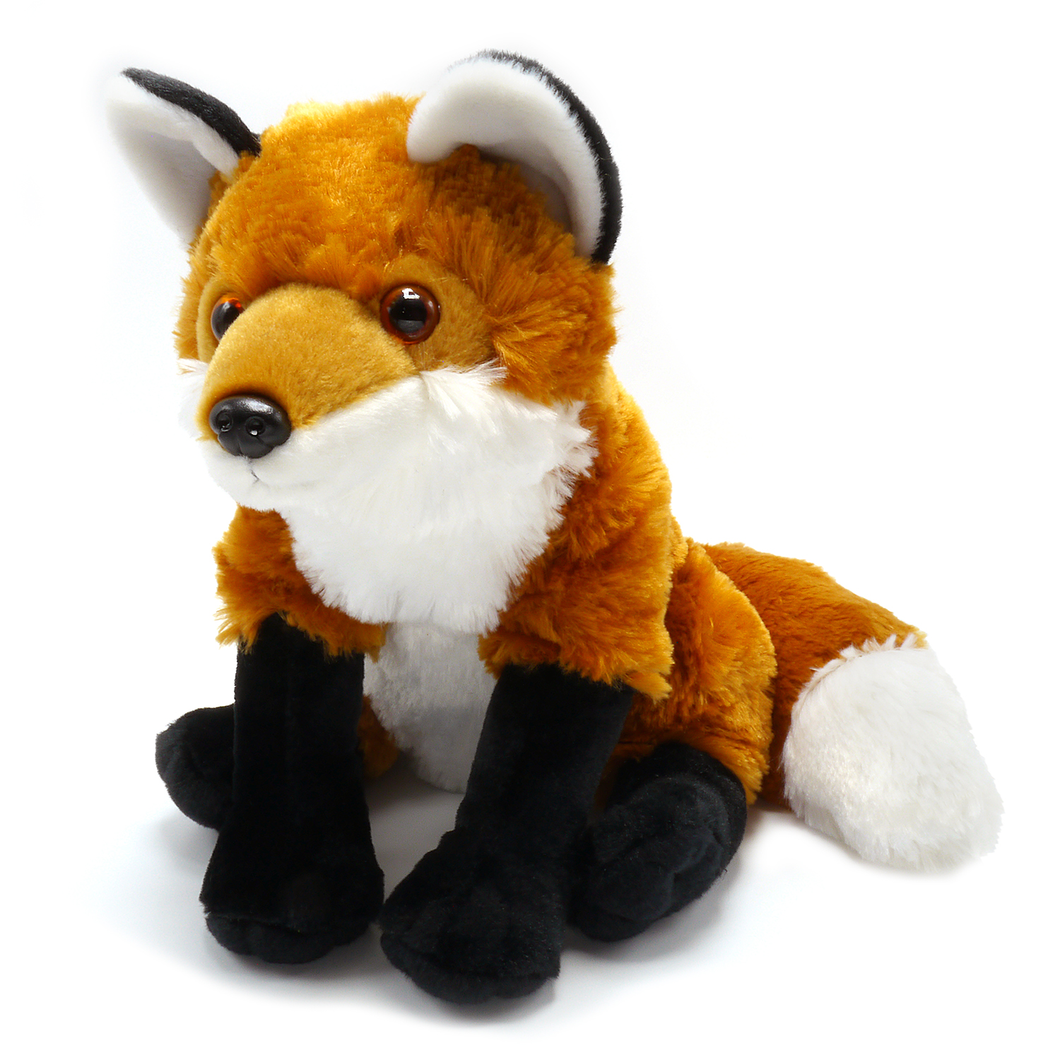 There is nothing sly or remotely cunning about our Red Fox Cuddlekins plush toy! Red foxes have large, upright ears and their hearing is so sharp that they can hear a watch ticking 40 yards away. The red fox will continue to hunt even when its tummy is full, storing extra food under leaves, snow or dirt, to be eaten later. This 12-inch plush animal toy gets everything right – from its brown eyes to soft fur to the bushy tail.