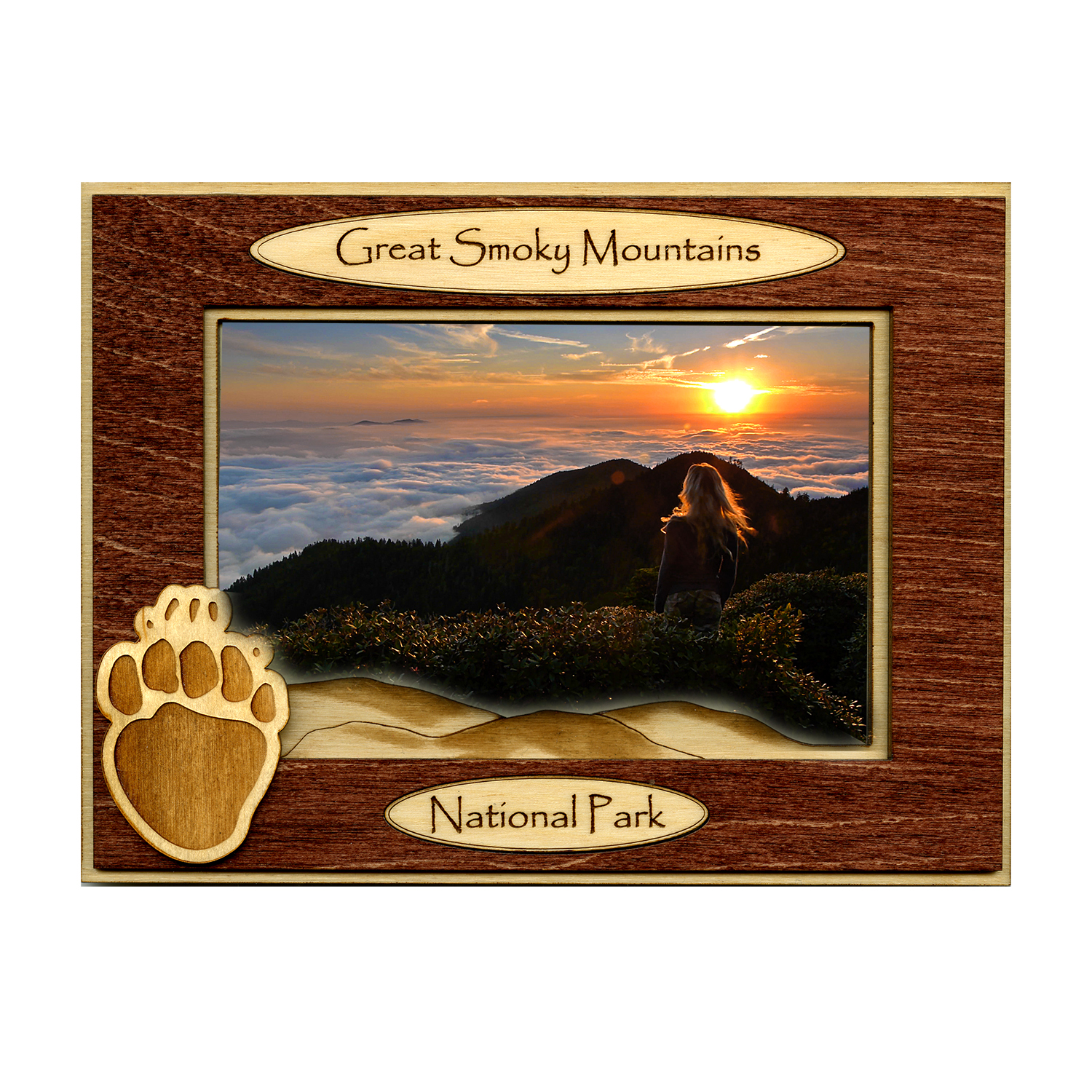 Locally made in Gatlinburg by local craftsman Tim Weberding, this wooden frame is perfect for featuring that favorite vacation picture of your visit to Great Smoky Mountains National Park. Frame size accommodates a 4 x 6 inch photo.