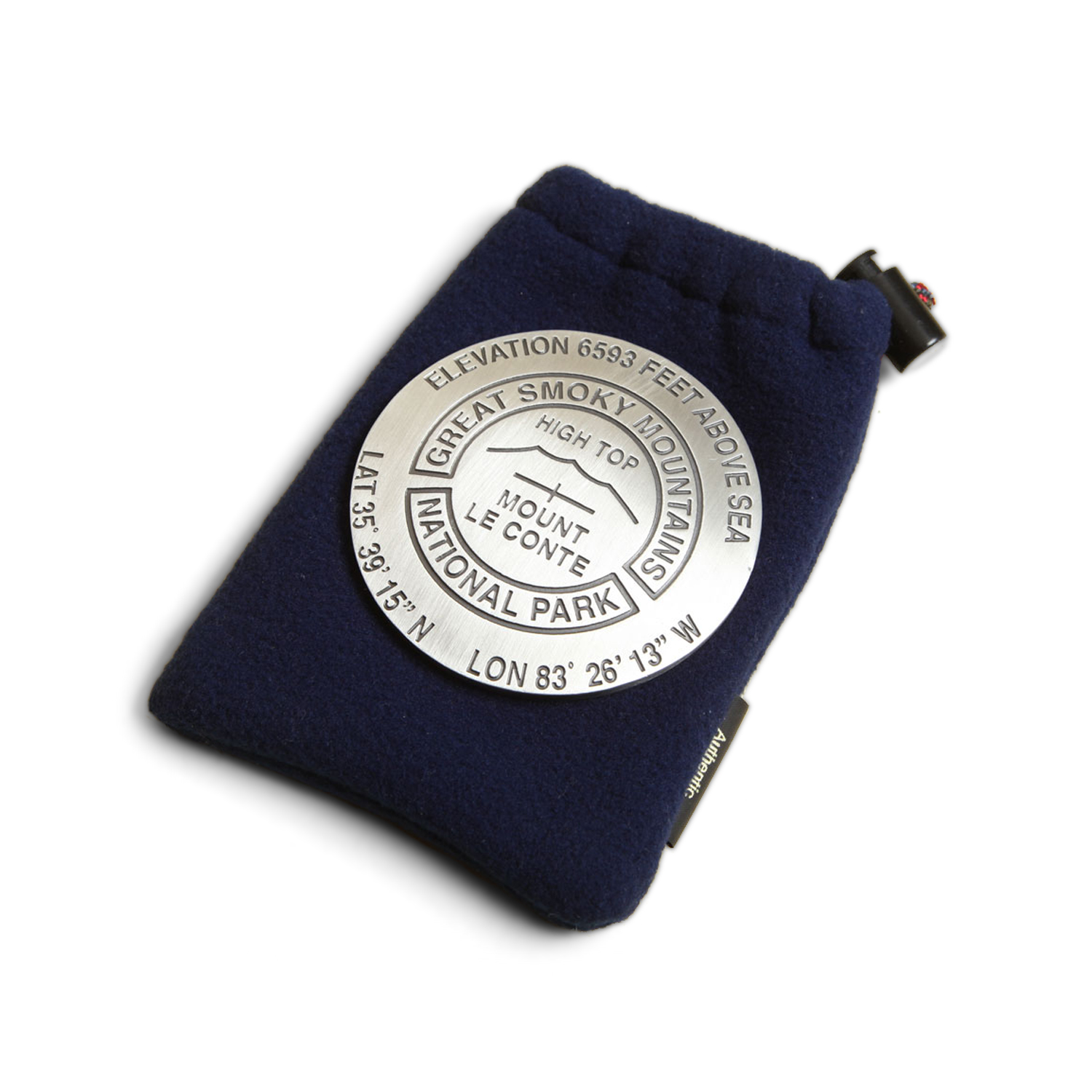 You’ll love the look and feel of this pewter replica of the USGS benchmark on High Top of Mount Le Conte. The replica includes elevation, latitude and longitude. If you’ve climbed the mountain, you’ve earned this handsome paperweight souvenir. Comes with navy blue fleece bag and special buffing cloth.