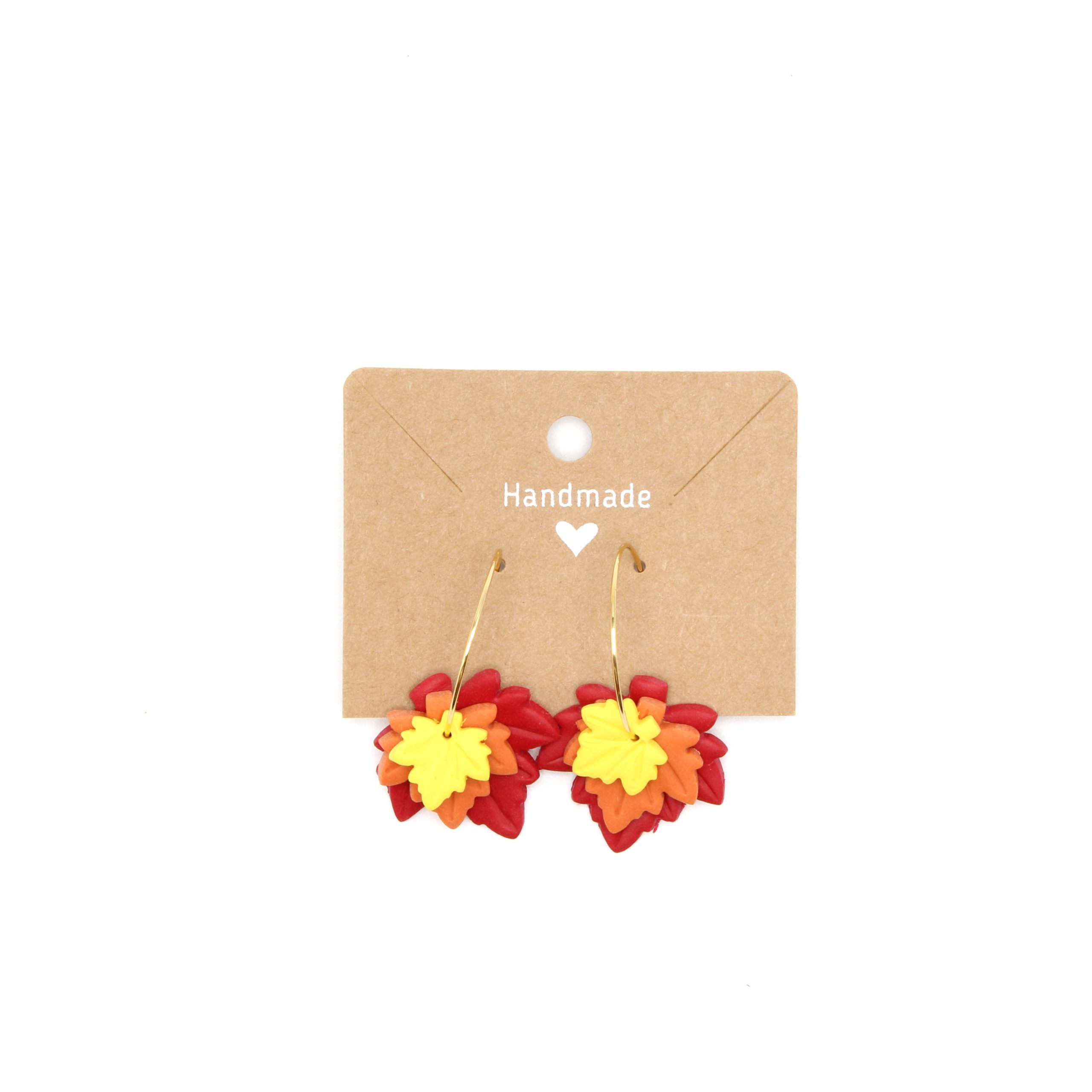 If fall is your favorite season in Great Smoky Mountains National Park, then these Fall Leaf Earrings are for you! Three colorful polymer clay maple leaves on a gold tone stainless steel hoop show off the best of the season. Earrings measure 1.5 inches long.