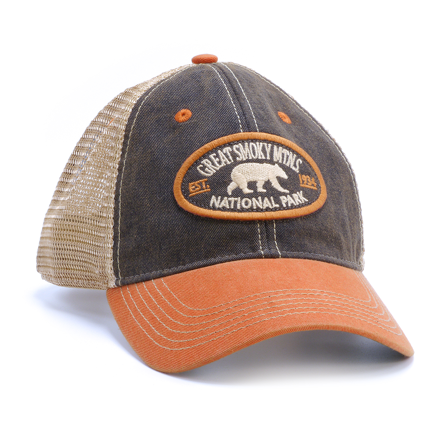Show off your Smoky Mountain pride with this cap! Features Great Smoky Mountains National Park with a black bear silhouette and an adjustable strap to fit any head.
