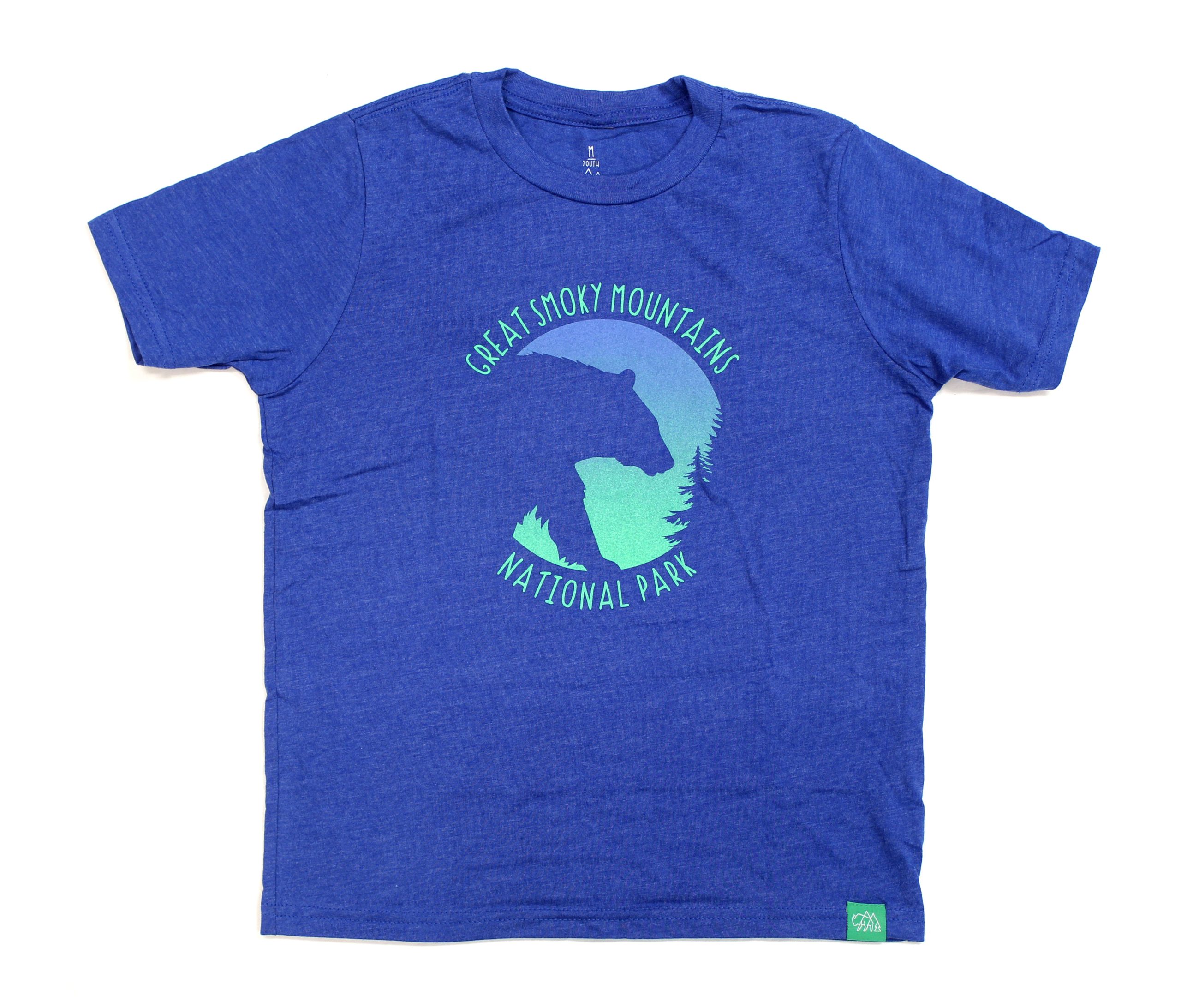 In a rich shade of royal blue, this youth black bear silhouette t-shirt features the wildlife icon of Great Smoky Mountains National Park. Made in the USA from 60% Cotton and 40% Poly Blend. . Wash Cold. Hang Dry.