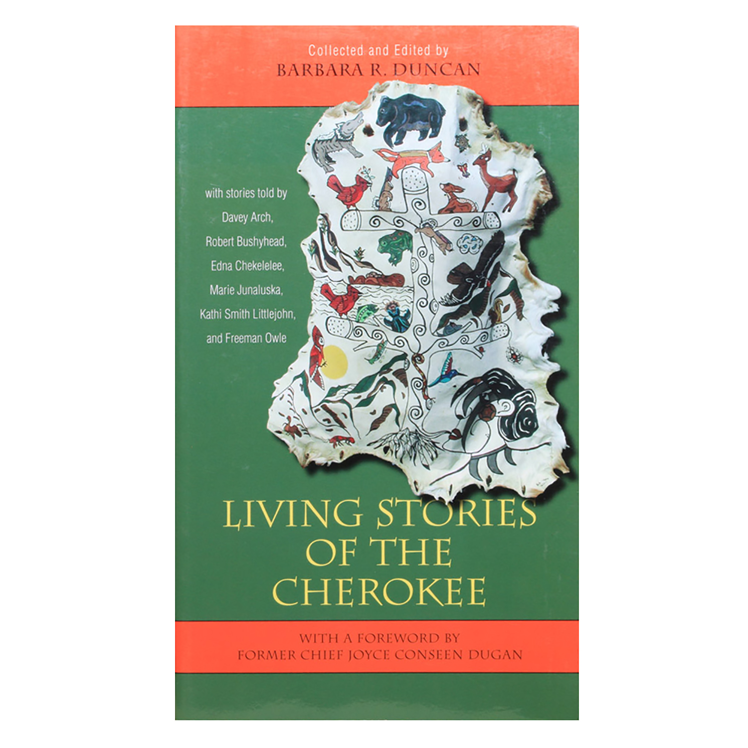 This remarkable book, the first major new collection of Cherokee stories published in nearly a hundred years, presents seventy-two traditional and contemporary tales from the Eastern Band of Cherokee Indians in North Carolina. It features stories told by Davey Arch, Robert Bushyhead, Edna Chekelelee, Marie Junaluska, Kathi Smith Littlejohn, and Freeman Owle–six Cherokee storytellers who learned their art and their stories from family and community. The tales gathered here include animal stories, creation myths, legends, and ghost stories as well as family tales and stories about such events in Cherokee history as the Trail of Tears. Taken together, they demonstrate that storytelling is a living, vital tradition. As new stories are added and old stories are changed or forgotten, Cherokee storytelling grows and evolves. In an introductory essay, Barbara Duncan writes about the Cherokee storytelling tradition and explains the “oral poetics” style in which the stories are presented. This format effectively conveys the rhythmic, oral quality of the living storytelling tradition, allowing the reader to “hear” the voice of the storyteller. Winner of the Storytelling World and Thomas Wolfe Literary awards. Softcover, 253 pages.
