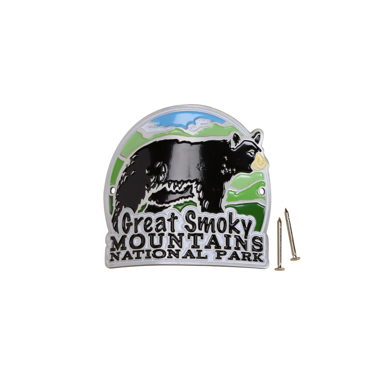 Add this hiking medallion to your Great Smoky Mountains National Park to your collection! Featuring the most iconic wildlife in the Smokies–the black bear. This medallion can be used on a metal trekking pole or on a wooden hiking stick. Measures 1 3/4 x 1 1/2 inches.