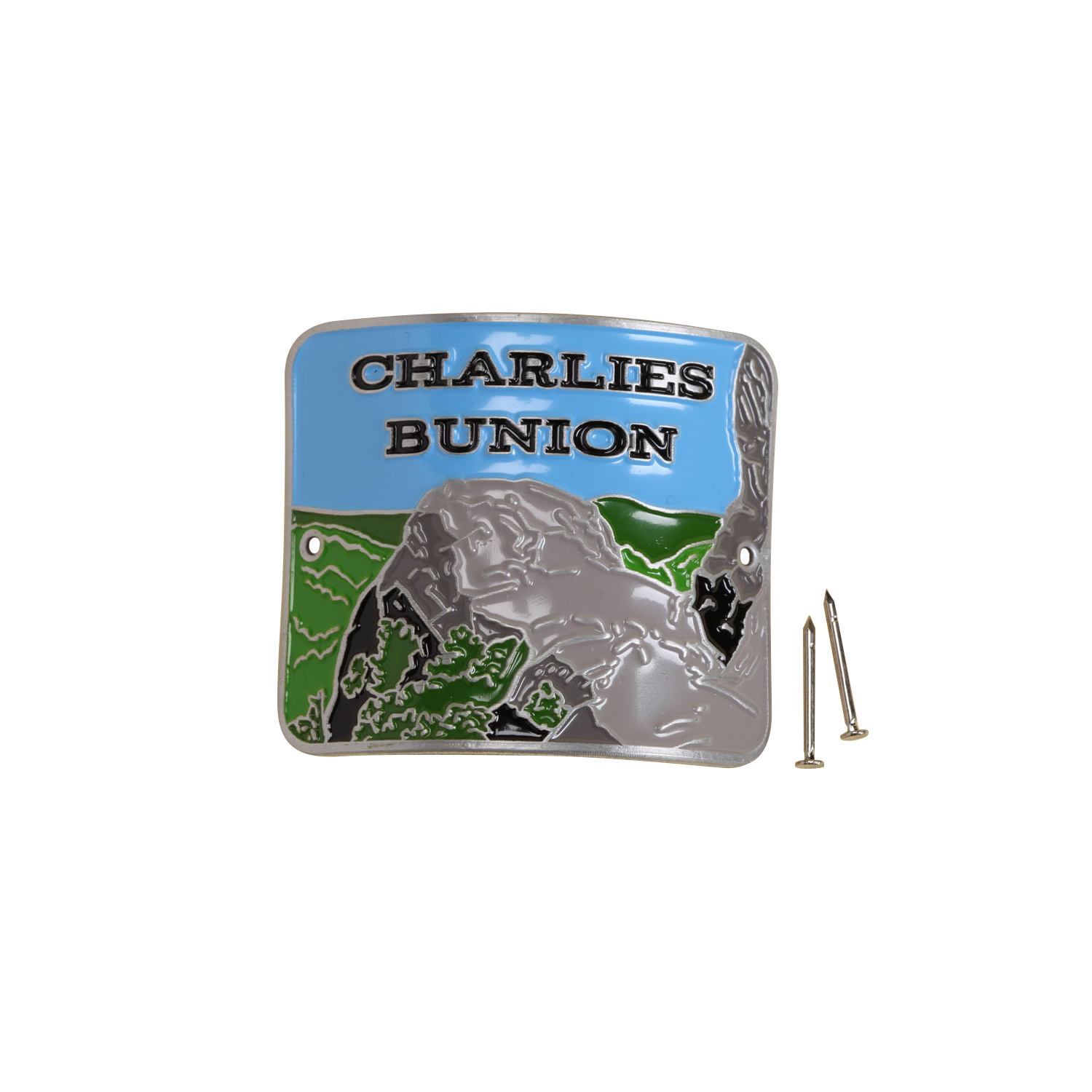 Commemorate your hiking achievement with a hiking medallion featuring Charlies Bunion – an eight-mile round-trip and 1600 feet elevation gain hike in Great Smoky Mountains National Park. Medallion is adhesive backed for use on metal trekking poles and also includes nails for wood hiking sticks and measures 1.75 x 1.50 inches.
