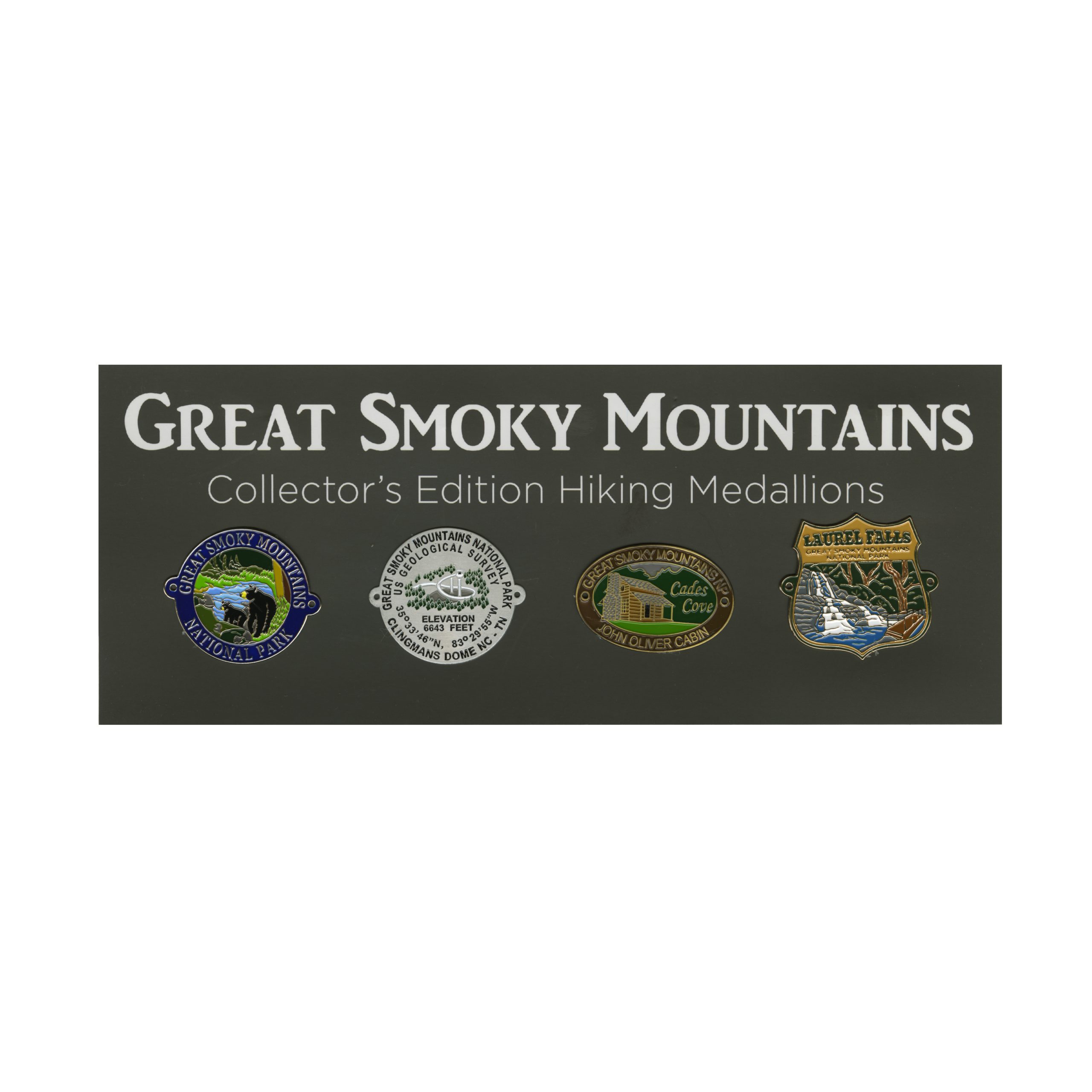 Add this Collectors Edition of Great Smoky Mountains National Park Hiking Medallions to your collection! Featuring black bears, Clingmans Dome benchmark, Cades Cove John Oliver Cabin and Laurel Falls, this collection covers some of the most iconic locations in the park. Hardware for mounting medallions onto wooden hiking sticks is included. By mounting hiking medallions to your favorite hiking stick, you can show your love for your favorite national park hikes. Medallions measure approximately 1.5 x 2 inches.