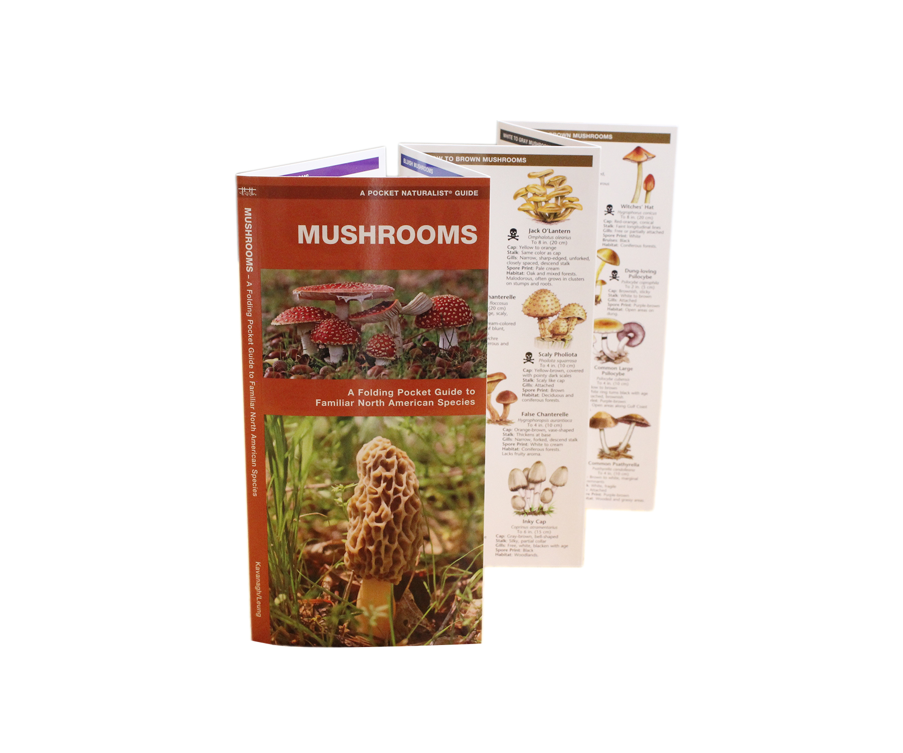 This richly illustrated folding guide from Waterford Press highlights over 60 familiar edible and 14 poisonous mushroom species. Information is presented logically based on what the viewer is most likely to observe. Lightweight, laminated format makes this guide perfect for the field. Compact 4” x 8” size opens out to 8” x 22”. Color pictures and information are located on both sides of the card. Perfect introductory guide for all ages and experience levels.