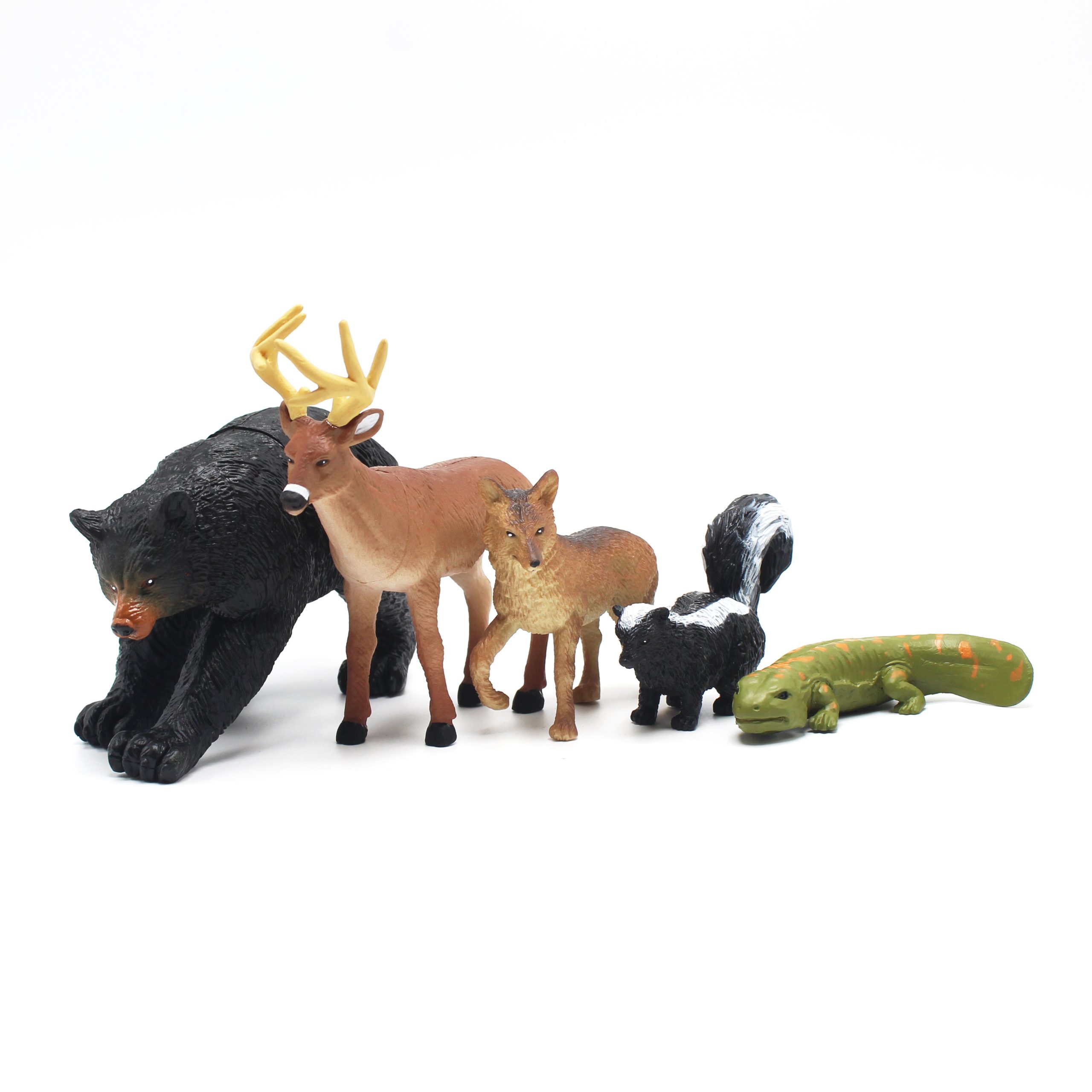 Wild Republic 5 Piece Animals Set: Skunk, Black Bear, Deer, Coyote, Salamander