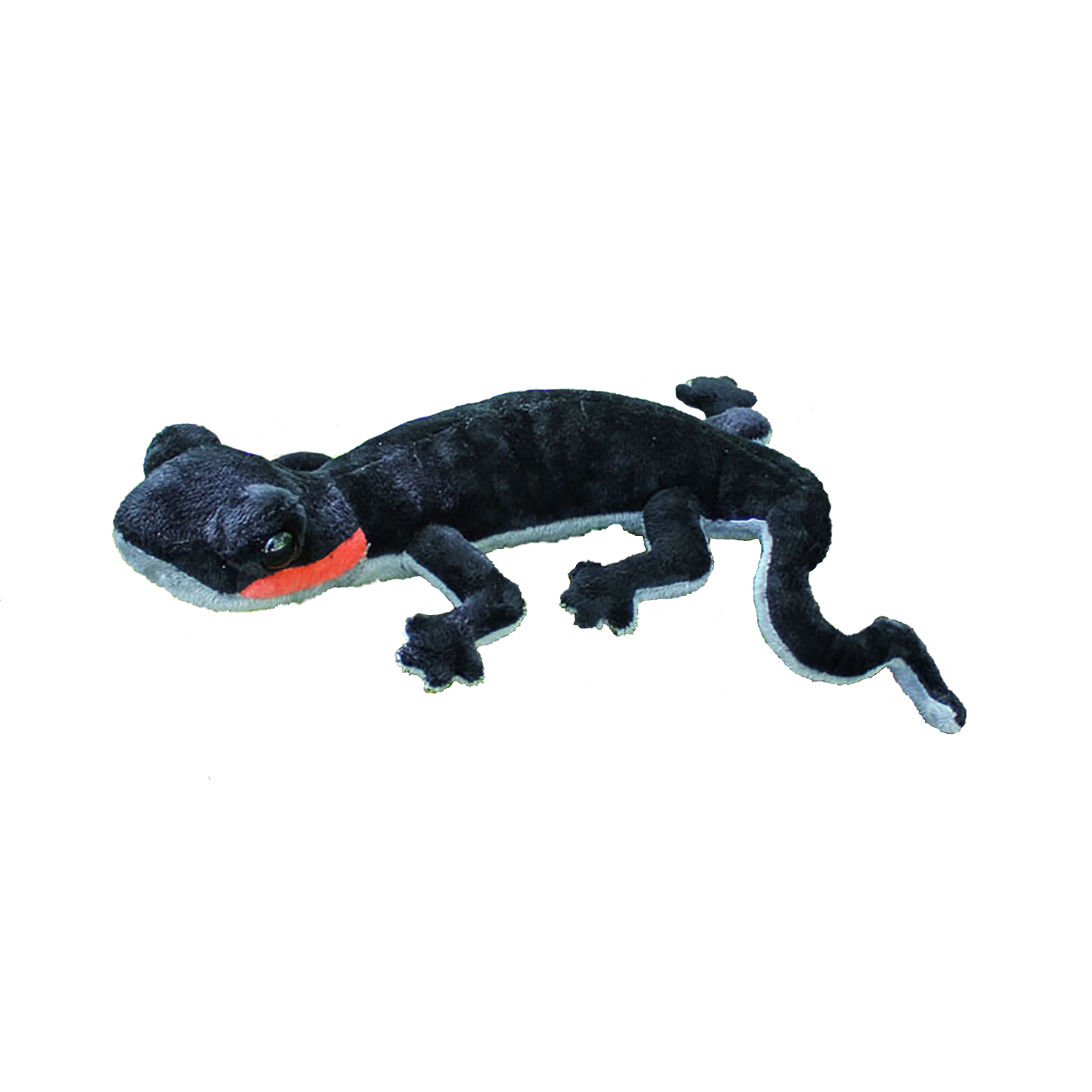 It’s hard to miss the bright red cheek of this salamander plush toy with a slinky black body that helps children learn about the wonders of the wild and the nature of reptiles. Crafted with durable stitching, this red cheeked salamander plushie features lifelike detailing, a soft structure perfect for cuddling, and material made from recycled water bottles. Plush toy measures 9 inches long.