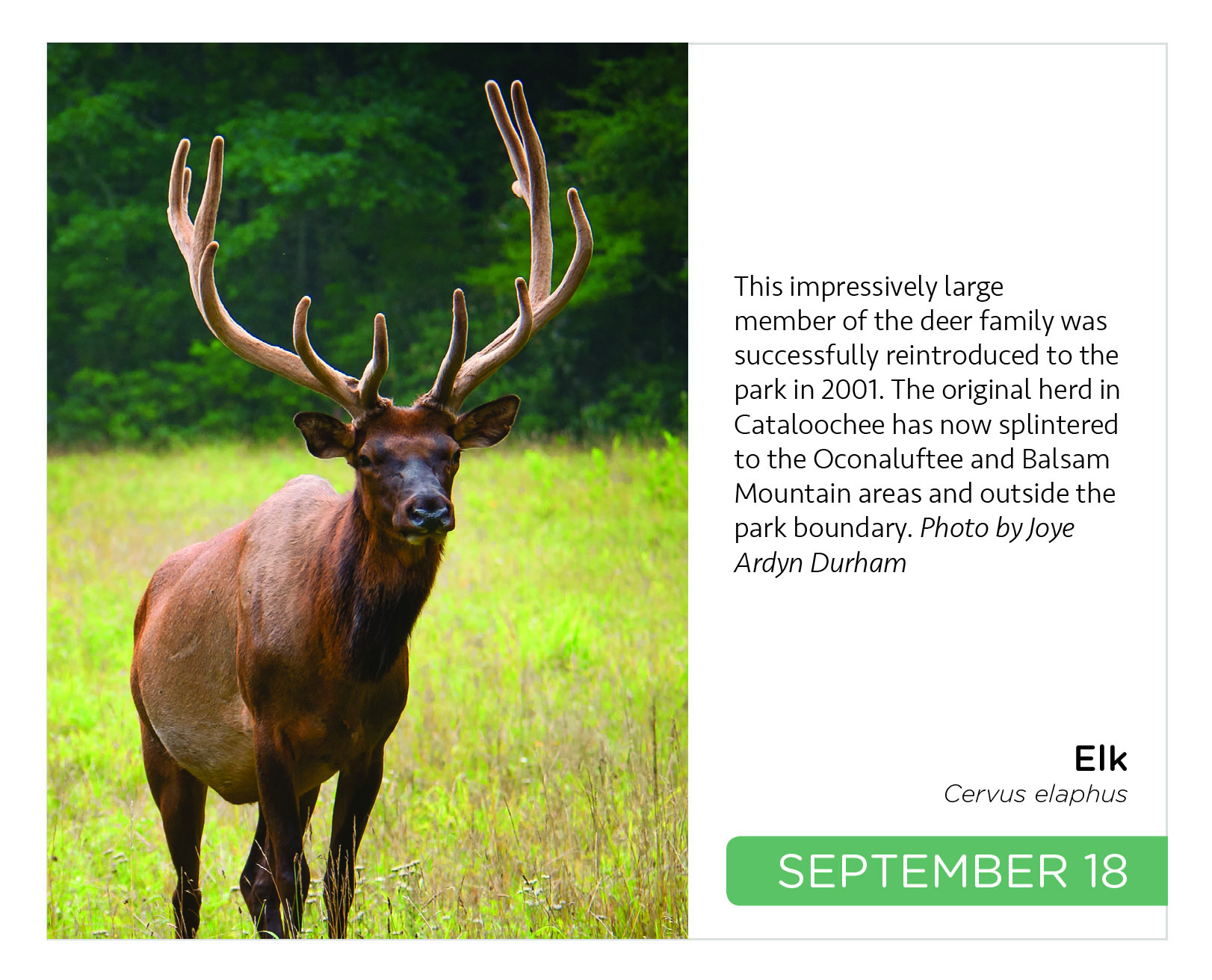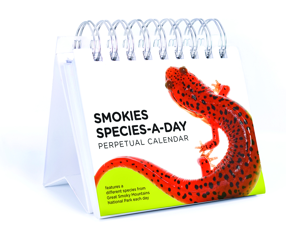 This perpetual desk calendar can be used during any year and features one species found in Great Smoky Mountains National Park each day. Each page includes a full-color illustration or photo as well as interpretive text that gives the casual (non-scientific) audience a bit of background knowledge about that species. Once a month, a page is dedicated to a “new to science” species that has been newly described by Discover Life in America in the All Taxa Biodiversity Inventory. The calendar was created through a partnership with Smokies Life, Discover Life in America and Great Smoky Mountains National Park. Spiral binding, 5 x 4 inches.