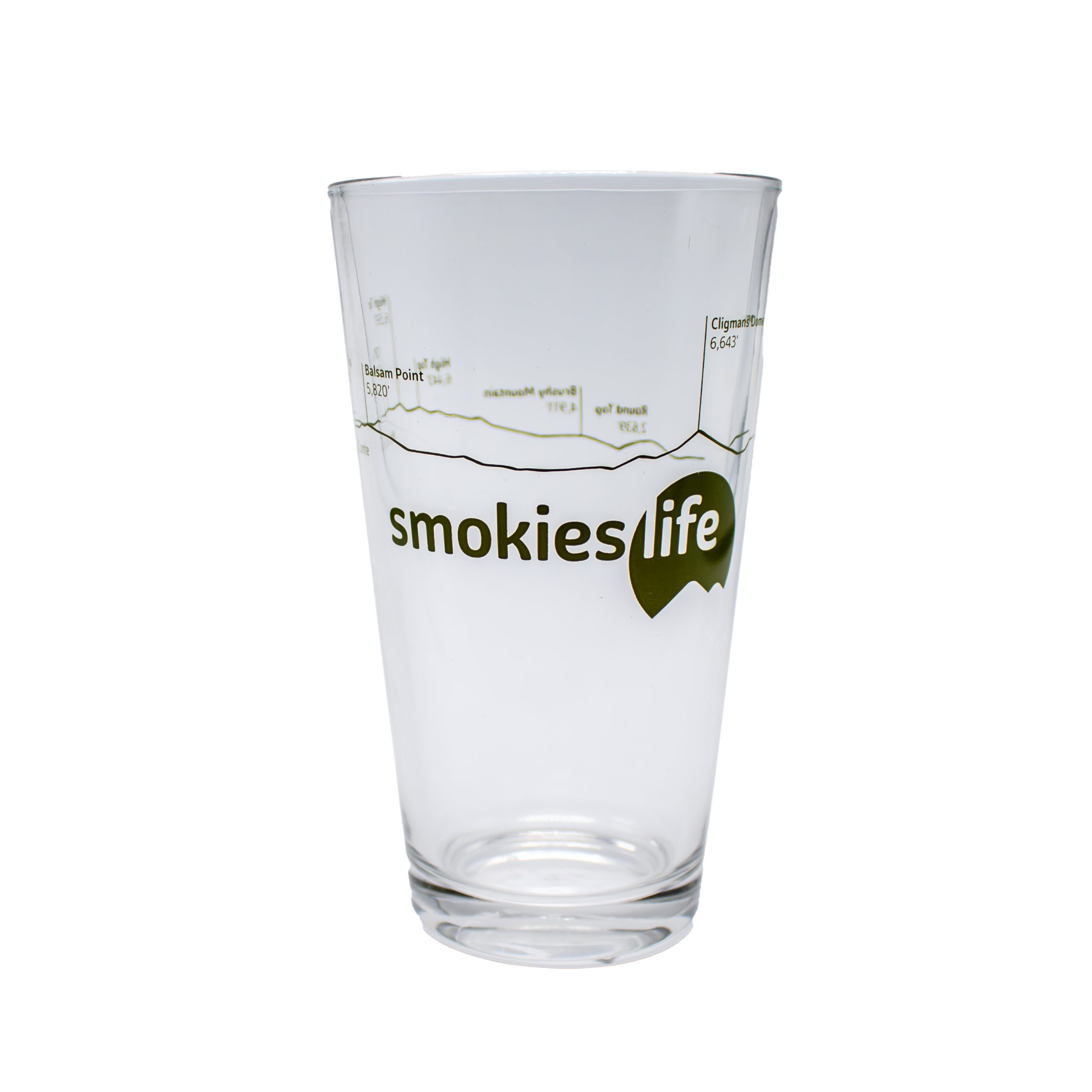 Raise a toast to your favorite national park with this Smokies Life pint glass! This 20 ounce drinking glass features Smoky Mountain elevations. Not dishwasher safe, hand wash only.