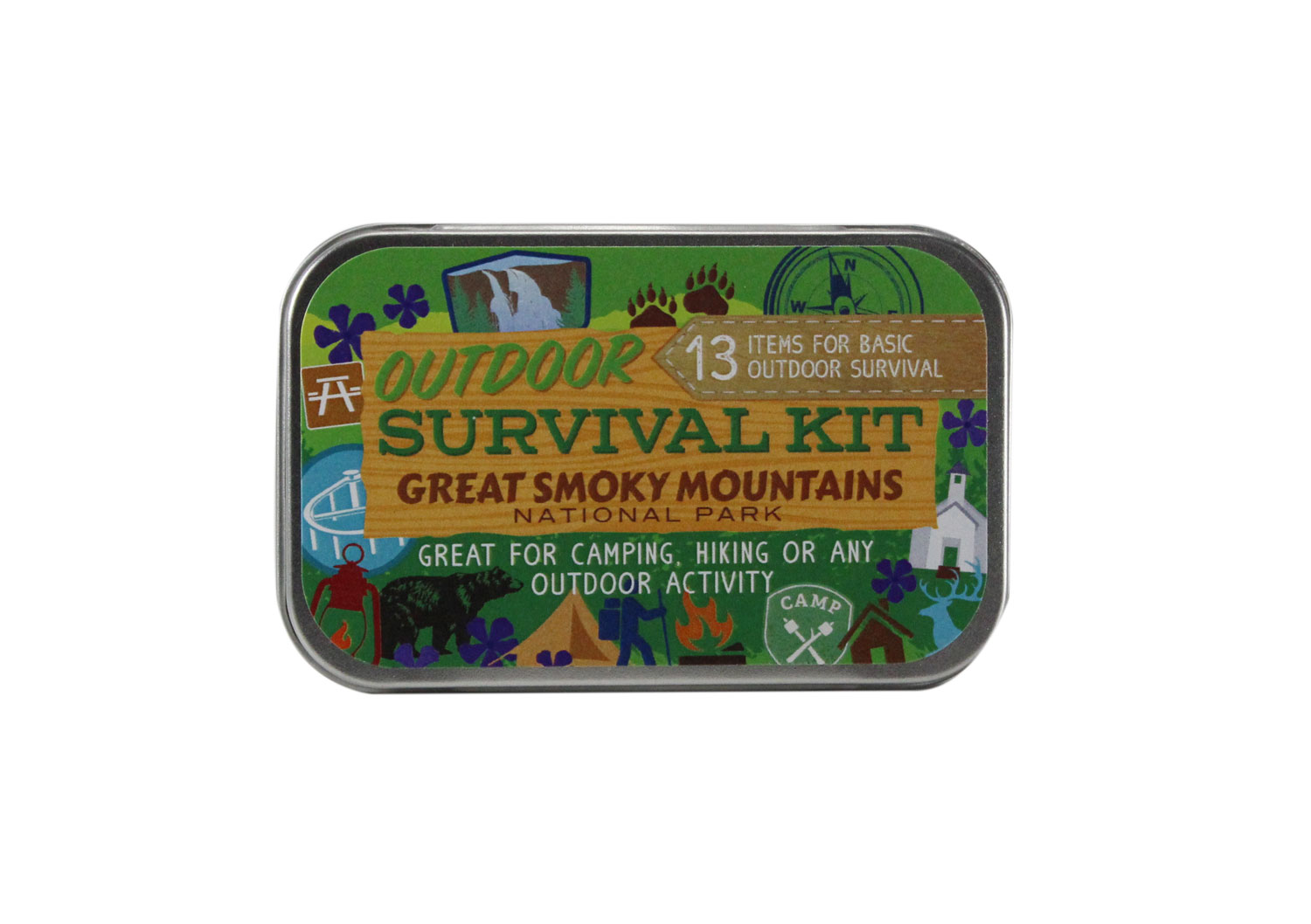 Take this mini survival kit on your next backcountry adventure in Great Smoky Mountains National Park! Kit includes Mini Roll Duct Tape, Safety Whistle, Book of Matches, Adhesive Bandages (4), Antiseptic Wipes (2), Cotton Balls (2), Mini Fishing Line, Fishing Hooks (2), Compass, Sewing Kit, Small Pencil, Mini Notepad.